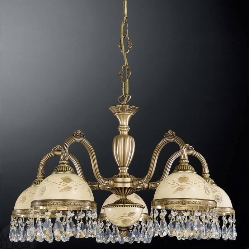 Люстра Reccagni Angelo L 6206/5 имеет оригинальный дизайн и надёжную конструкцию. Качество изделия гарантируется известным производителем Reccagni Angelo, Италия. Производитель рекомендует использовать для данной модели лампы типа - накаливания в количестве 5 штук с патроном E27 и мощностью 40 W.